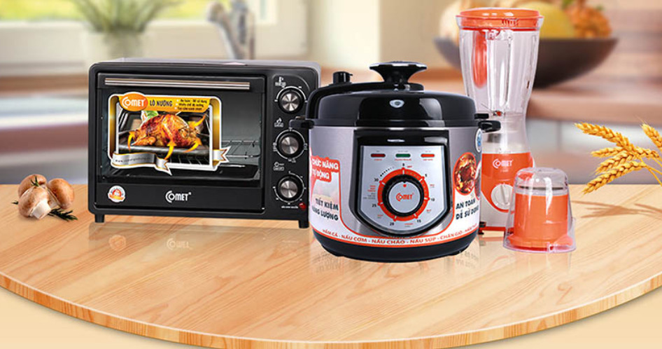 Bạn có thể tham khảo thử ngay những thiết bị gia dụng của nhà COMET. Với những tính năng hiện đại, đi kèm thiết kế sang trọng, tinh gọn. COMET sẽ hỗ trợ rất nhiều cho bạn trong việc nấu nướng, giúp công việc nấu ăn của bạn trở nên nhanh chóng và nhẹ nhàng hơn.