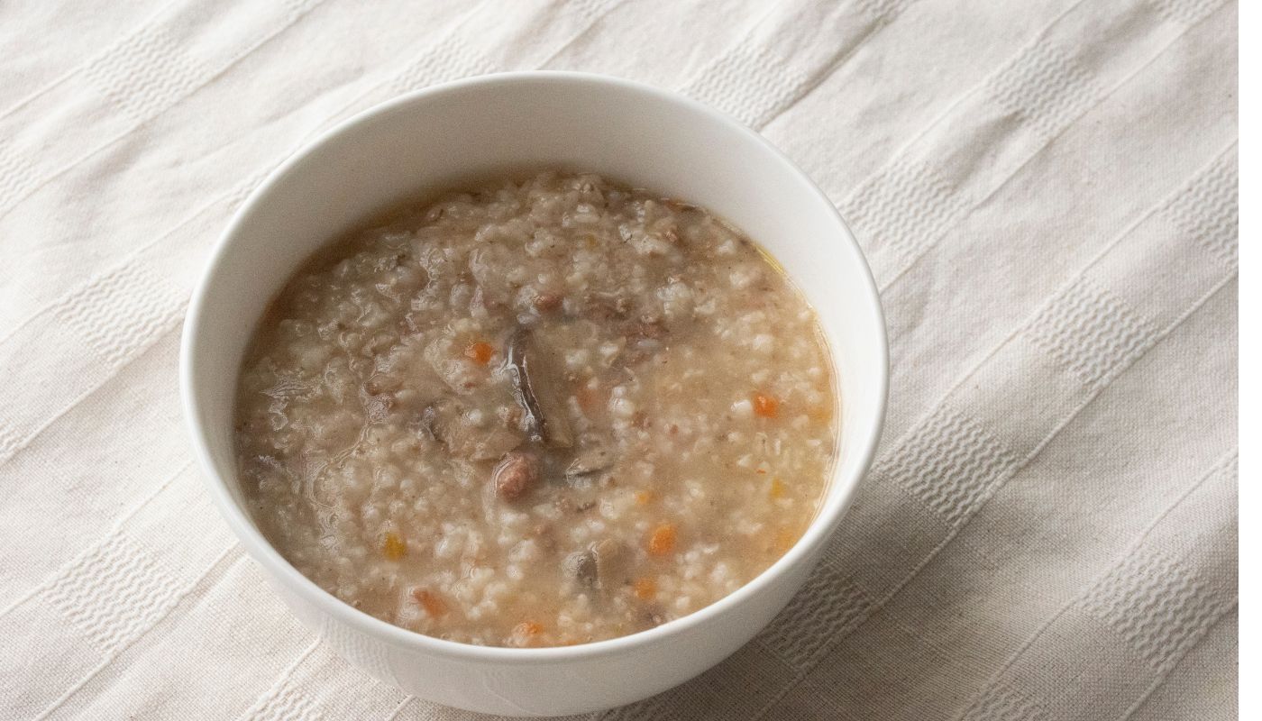Cháo gạo lứt, cà rốt và thịt bò