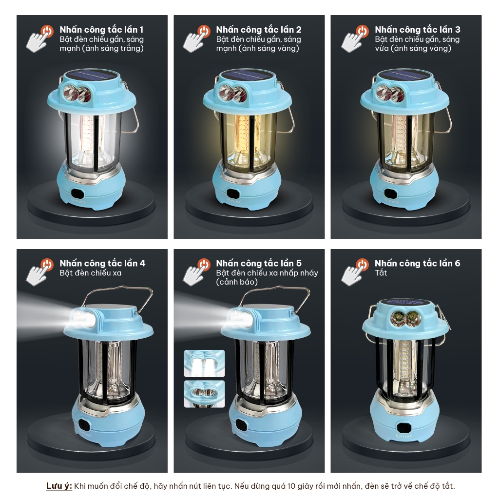 Đèn sạc led Comet CRL3403S với hai chế độ sạc: sạc điện trực tiếp bằng cổng type C và sạc solar dưới ánh sáng mặt trời.