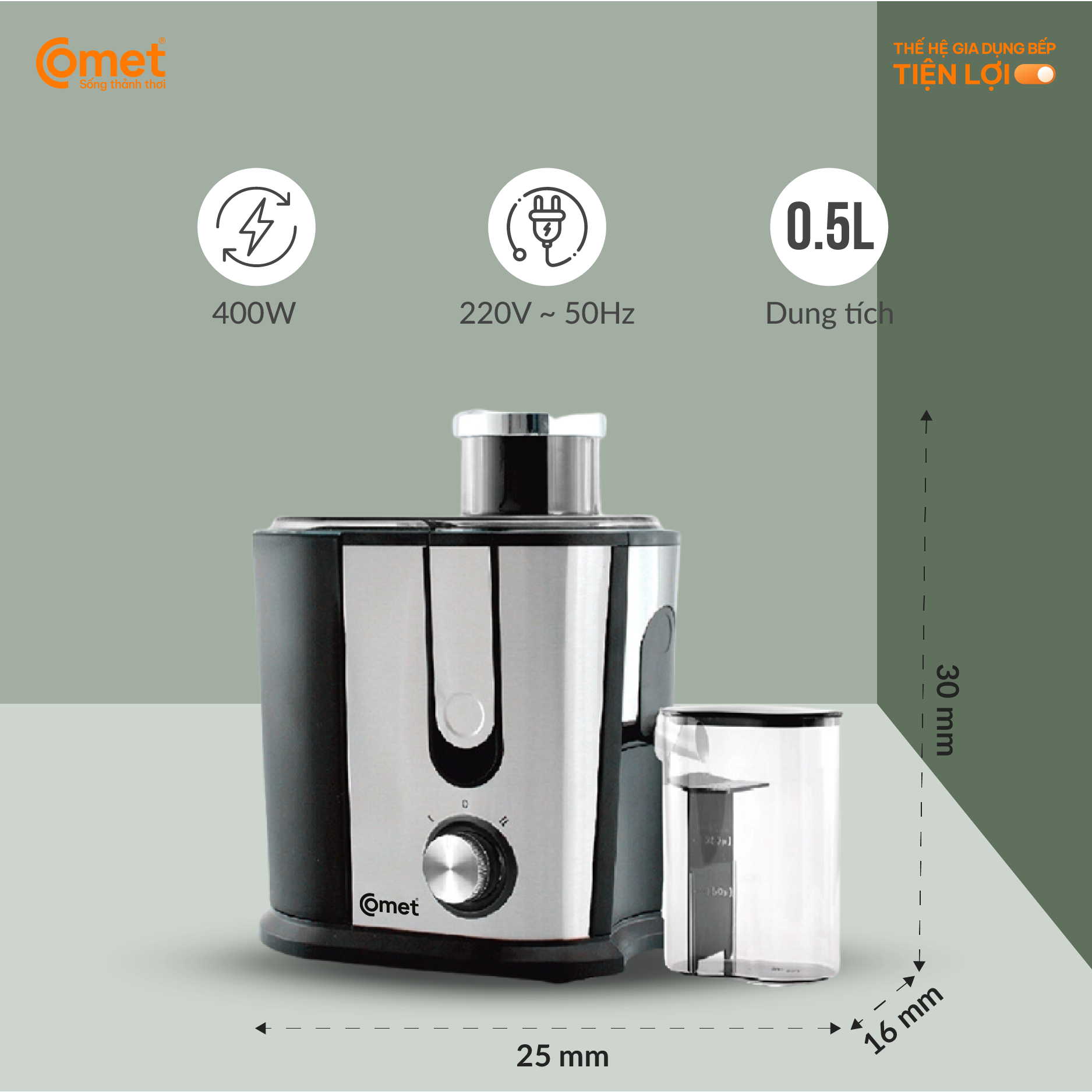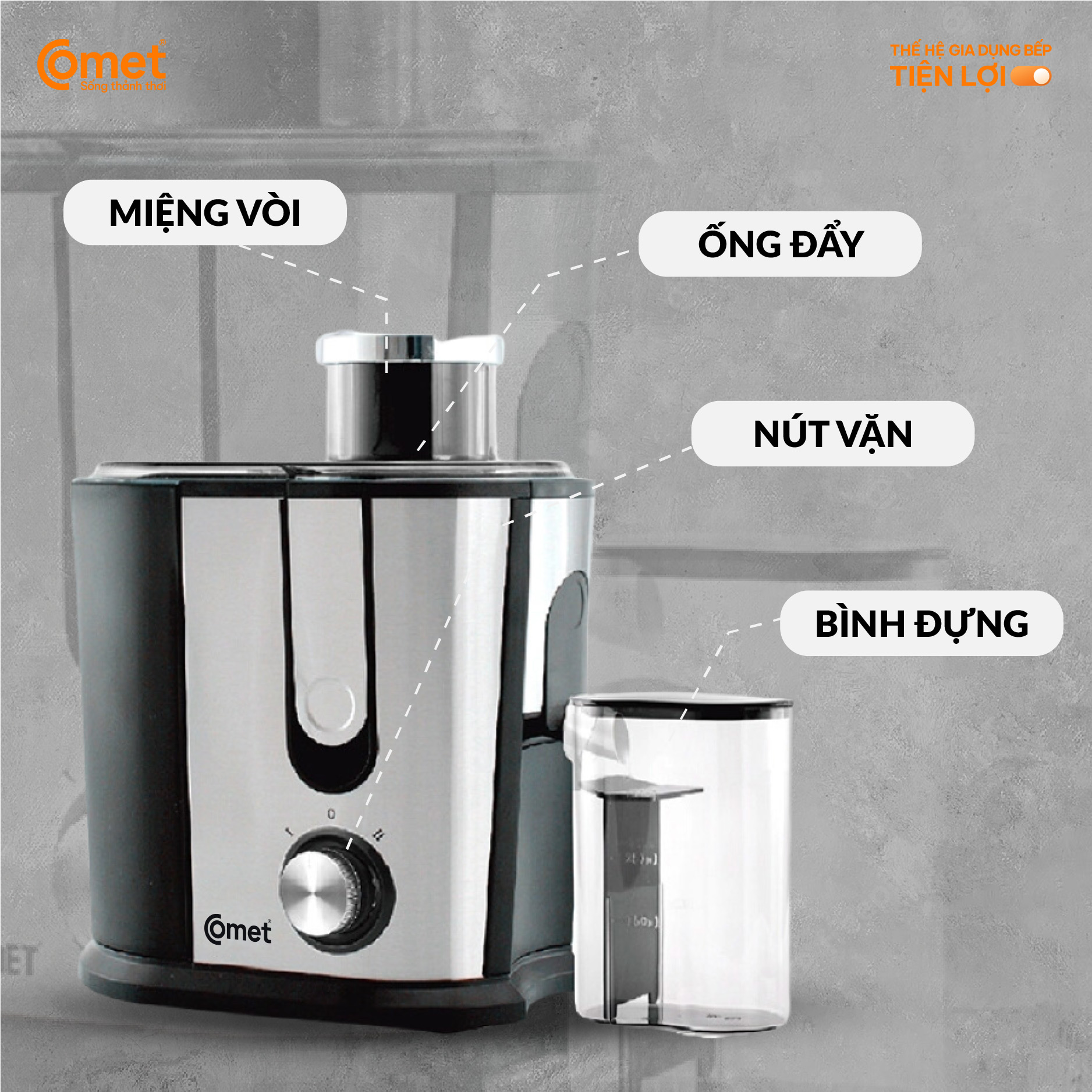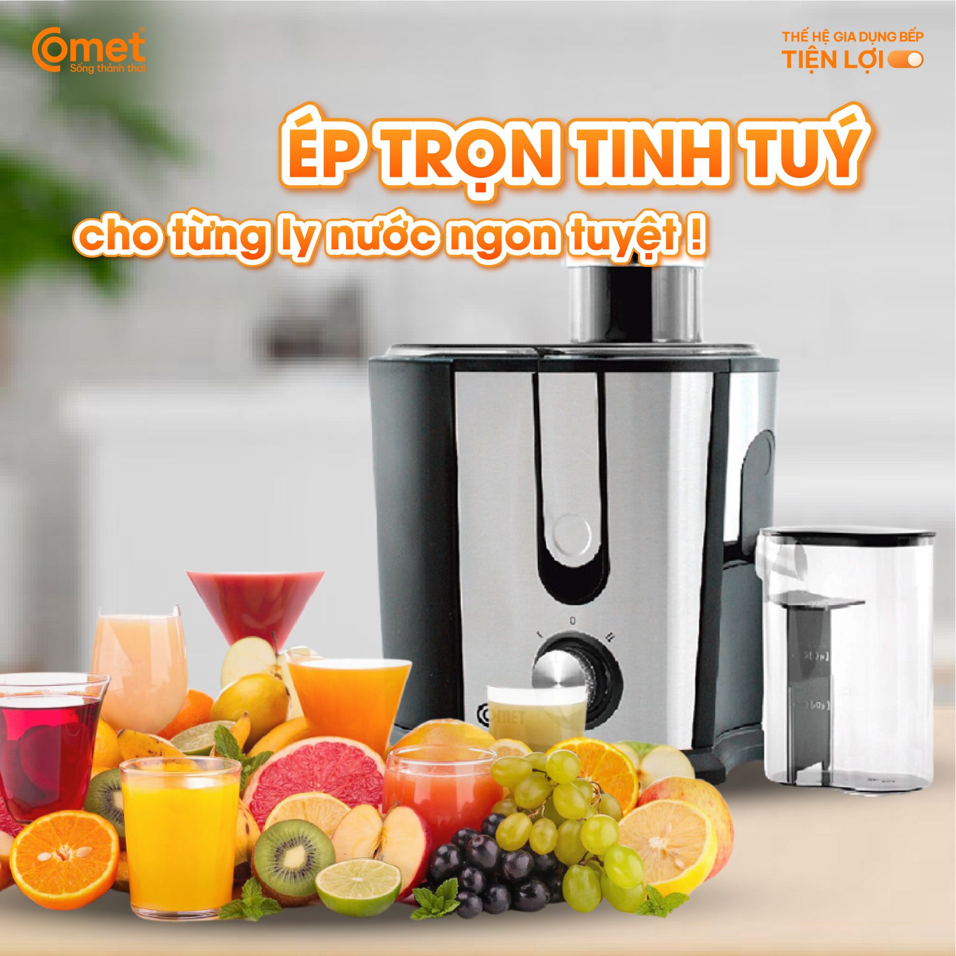 Máy ép trái cây Comet CM9838 với đường kính lớn (65 mm) có thể ép được cả trái táo hoặc lê một cách nhanh chóng mà không cần phải gọt vỏ. Động cơ của máy có công suất cao, lưỡi dao sắc bén giúp máy đạt hiệu suất cao, tiết kiệm thời gian, tiết kiệm năng lượng. Bên cạnh đó máy ép trái cây Comet CM9838 được bảo vệ chống quá nhiệt và có chức năng khóa an toàn, đảm bảo an toàn cho cả sản phẩm và người sử dụng.