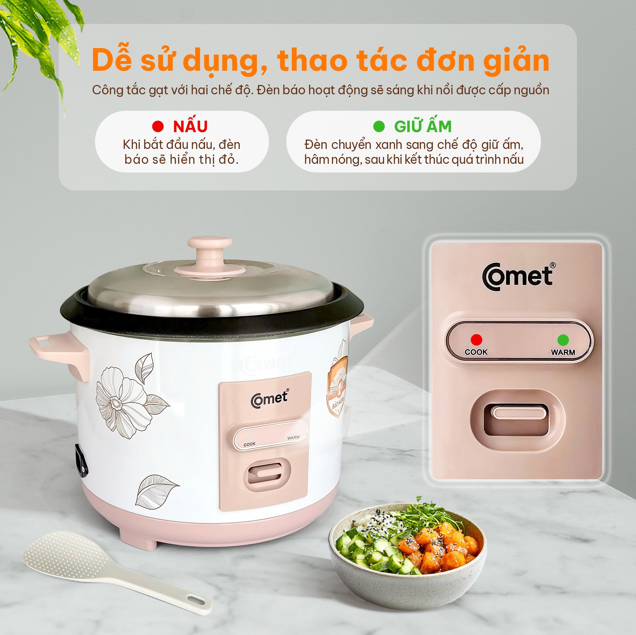 | Chế độ | Nấu cơm, giữ ấm |