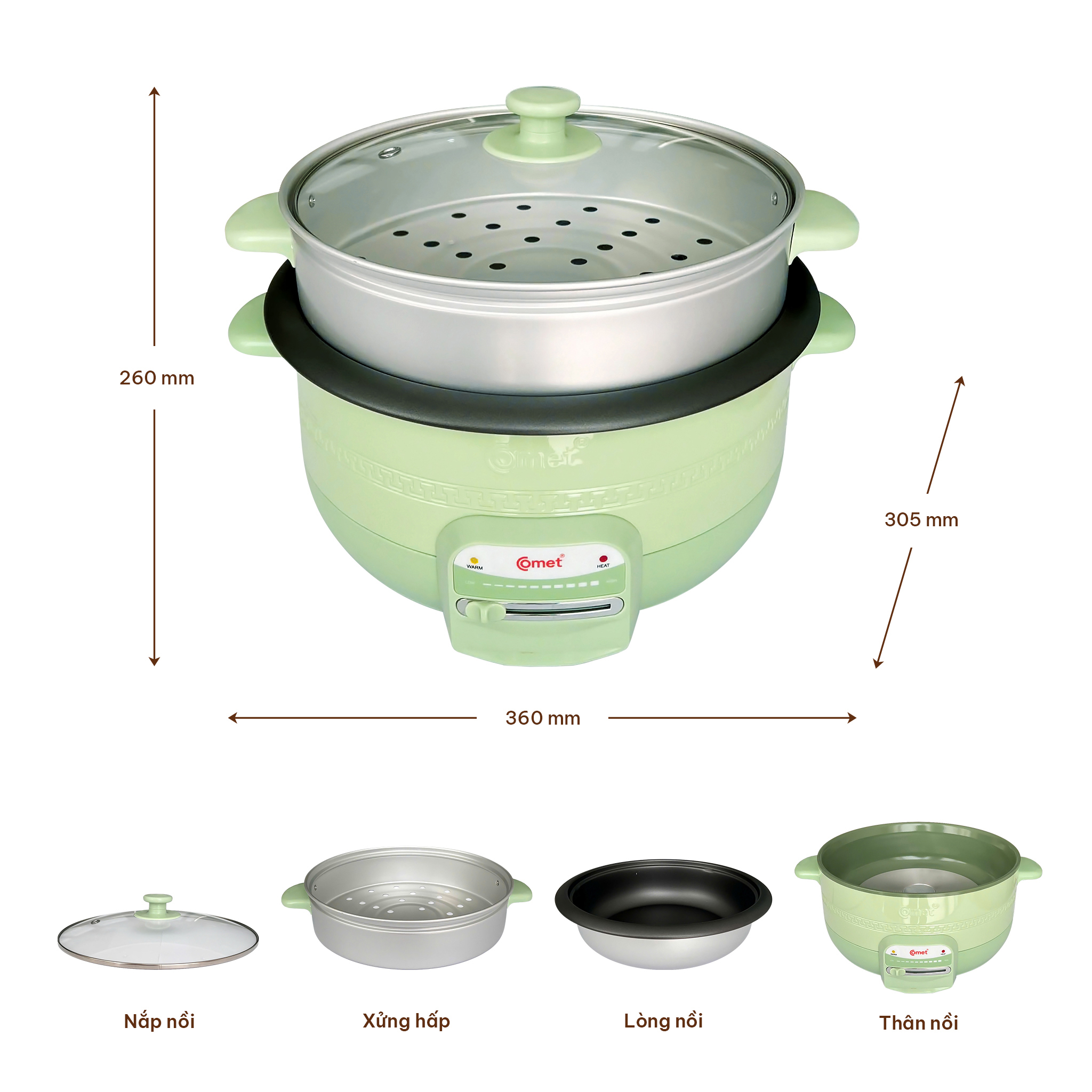 | Lòng nồi | Nhôm, phủ sơn chống dính, loại lồng nồi rời |