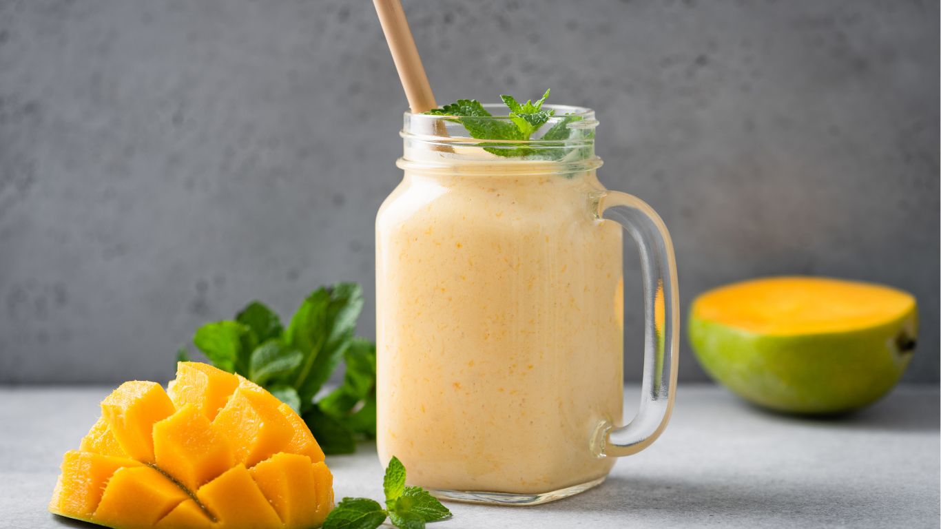 Xoài chứa rất nhiều vitamin A, C, kali và serat. Kết hợp với sữa chua Hy Lạp, món sinh tố này sẽ cung cấp đủ chất dinh dưỡng, đồng thời giúp bạn no lâu và giảm cân hiệu quả.