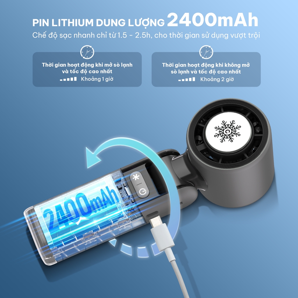 Sản phẩm tích hợp động cơ DC không chổi than bền bỉ, vận hành êm ái và tiết kiệm năng lượng. Đặc biệt, quạt hỗ trợ 199 cấp độ gió tùy chỉnh, dễ dàng điều chỉnh theo nhu cầu sử dụng. Màn hình LED hiển thị đa thông tin cùng đèn LED chiếu sáng tiện lợi, phù hợp mang theo khi đi học, đi làm, du lịch hoặc hoạt động ngoài trời.